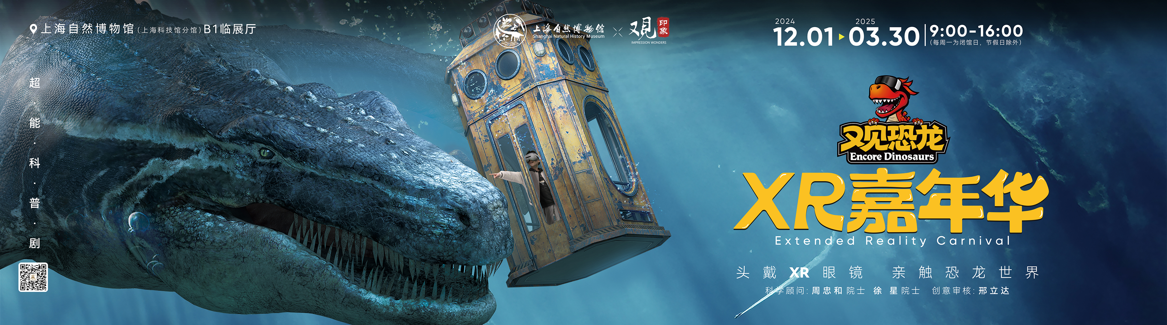戴上XR眼镜去“追龙”是种什么体验?2024年11月30日,由上海自然博物馆(上海科技馆分馆)与三湘印象联合出品、三湘印象旗下观印象艺术发展有限公司承制的《又见恐龙》XR嘉年华在上海自然博物馆开幕,12月1日起对公众开放,将持续至2025年3月30日。