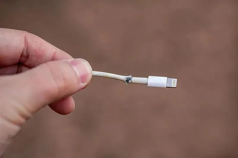 此外,破损的数据线也别再用。一些老旧、劣质充电数据线由于长期使用,会出现表皮破损、内部绝缘物质老化等现象。使用破损的数据线充电,不仅容易出现短路现象,引发火灾;当数据线内部金属线裸露时,还可能漏电,给人带来危险。