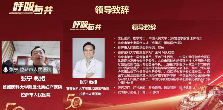 北京市第十批“组团式”医疗援藏领队、拉萨市人民医院院长张宁教授表示,高原呼吸疾病诊治工作在“组团式”援藏的帮扶下,西藏自治区呼吸病学的进展突飞猛进,这些也是我们全体从事高原医学医务工作者共同努力、共同成长的结果。进藏3个多月来,切身体会到高原环境对人体,尤其是对呼吸系统的巨大影响。呼吸与共,命运与共,今后我们大家一起努力,为高原医学、高原呼吸病的诊治做出应有的贡献。