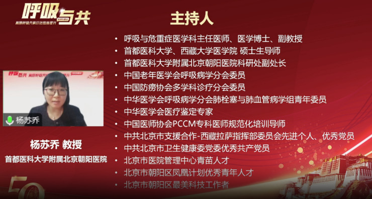 由北京市第八批“组团式”医疗援藏队员、首都医科大学附属北京朝阳医院杨苏乔医生发起,依托全国肺栓塞与肺血管病防治协作组,由中国医学论坛报携手西藏医学会呼吸分会、苏州协同医疗健康基金会共同举办的《呼吸与共——高原呼吸共病诊治思维提升系列专题会》,自2023年11月21日启动至今,已圆满完成50期学术活动,并于2024年11月26日在线上成功举办了周年庆典。中国工程院副院长王辰院士、中南大学湘雅医院首席专家胡成平教授、拉萨市人民医院院长张宁教授、中日友好医院翟振国教授、拉萨市人民医院呼吸与危重症医学科主任张云桃等出席会议,大会由首都医科大学附属北京朝阳医院科研处副处长杨苏乔教授主持。