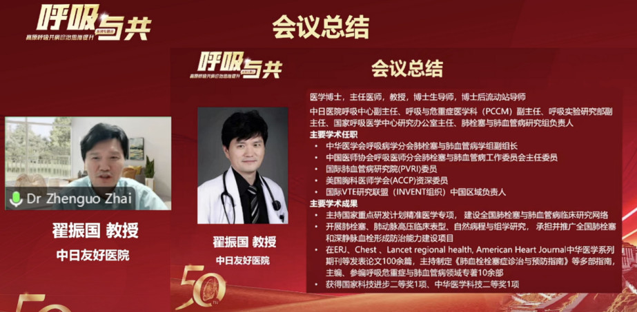 最后,中华医学会呼吸分会肺栓塞与肺血管病学组副组长、中日友好医院翟振国教授做总结发言。