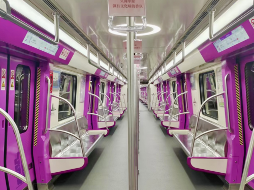 郑州地铁6号线线路以“流光溢彩、魅力新城”为设计主题,以“儒雅紫”为线路色贯穿全线车站,强化了线路识别性和导向性,通过色彩与造型的处理,体现艺术化、科技化和国际化,在设计中透露出速度与活力。