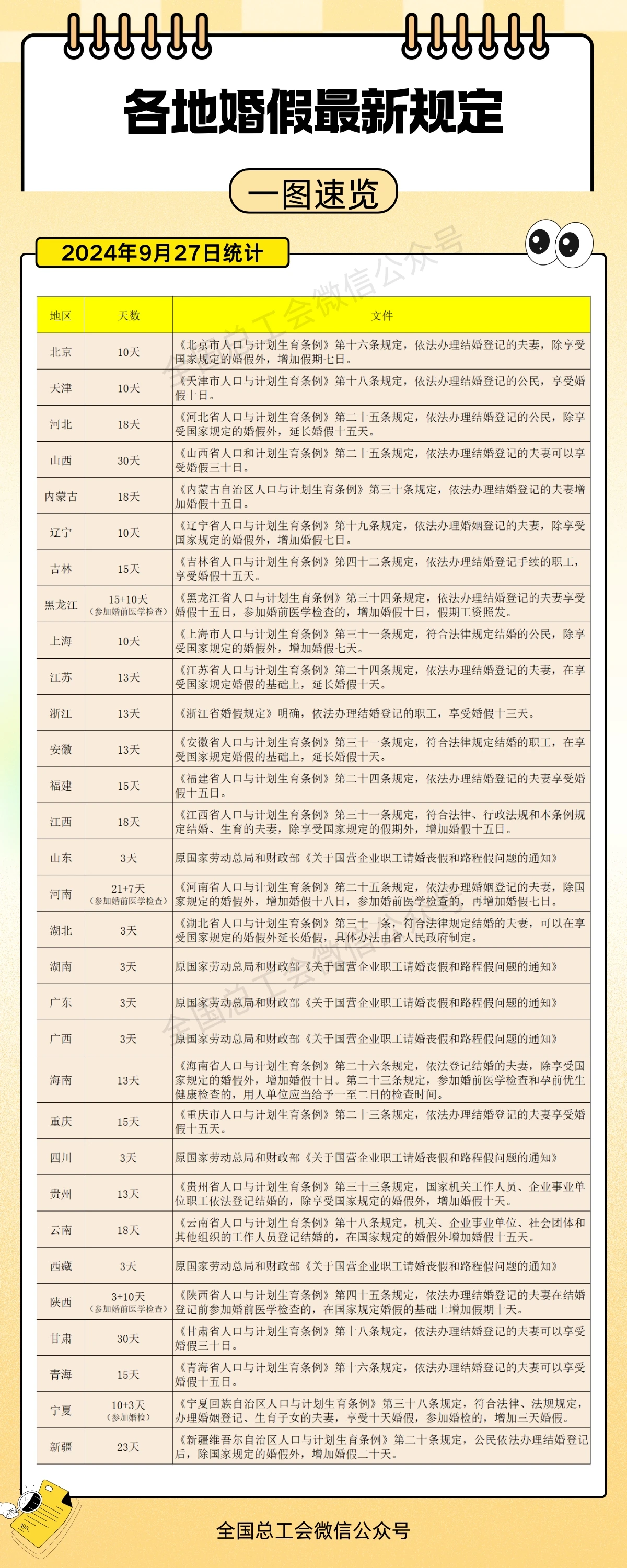 一图速览各地关于婚假的规定↓↓