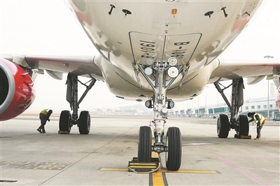 装有国产民航轮胎的飞机在桂林两江国际机场完成试飞,平稳降落。吴承强摄(人民视觉)