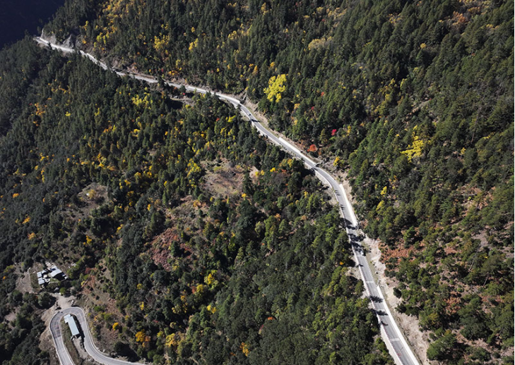 穿行在茂密森林中的德贡公路。