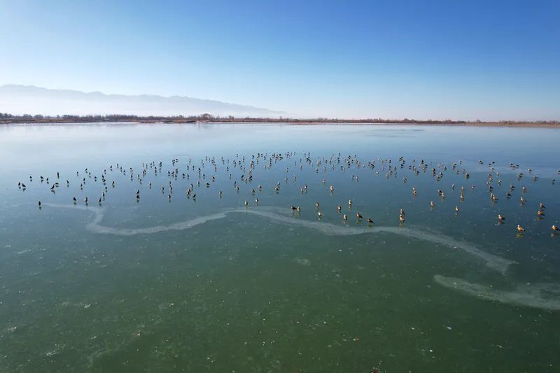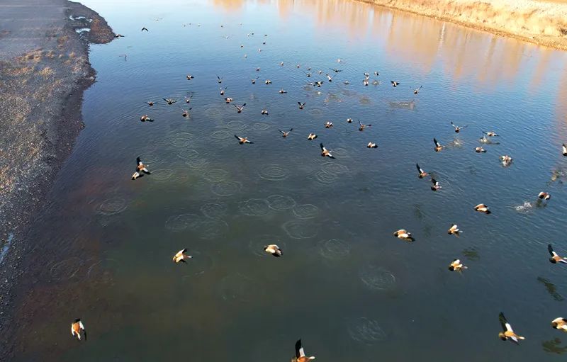 连日来,在张掖市临泽县双泉湖水库、黑河流域,成群的候鸟或飞翔或驻足,或低头觅食,与周边的湿地形成一道亮丽的冬季风景线,临泽县又迎来了最佳观鸟季。
