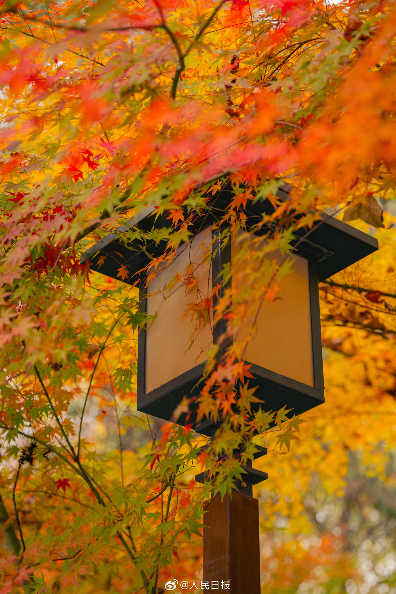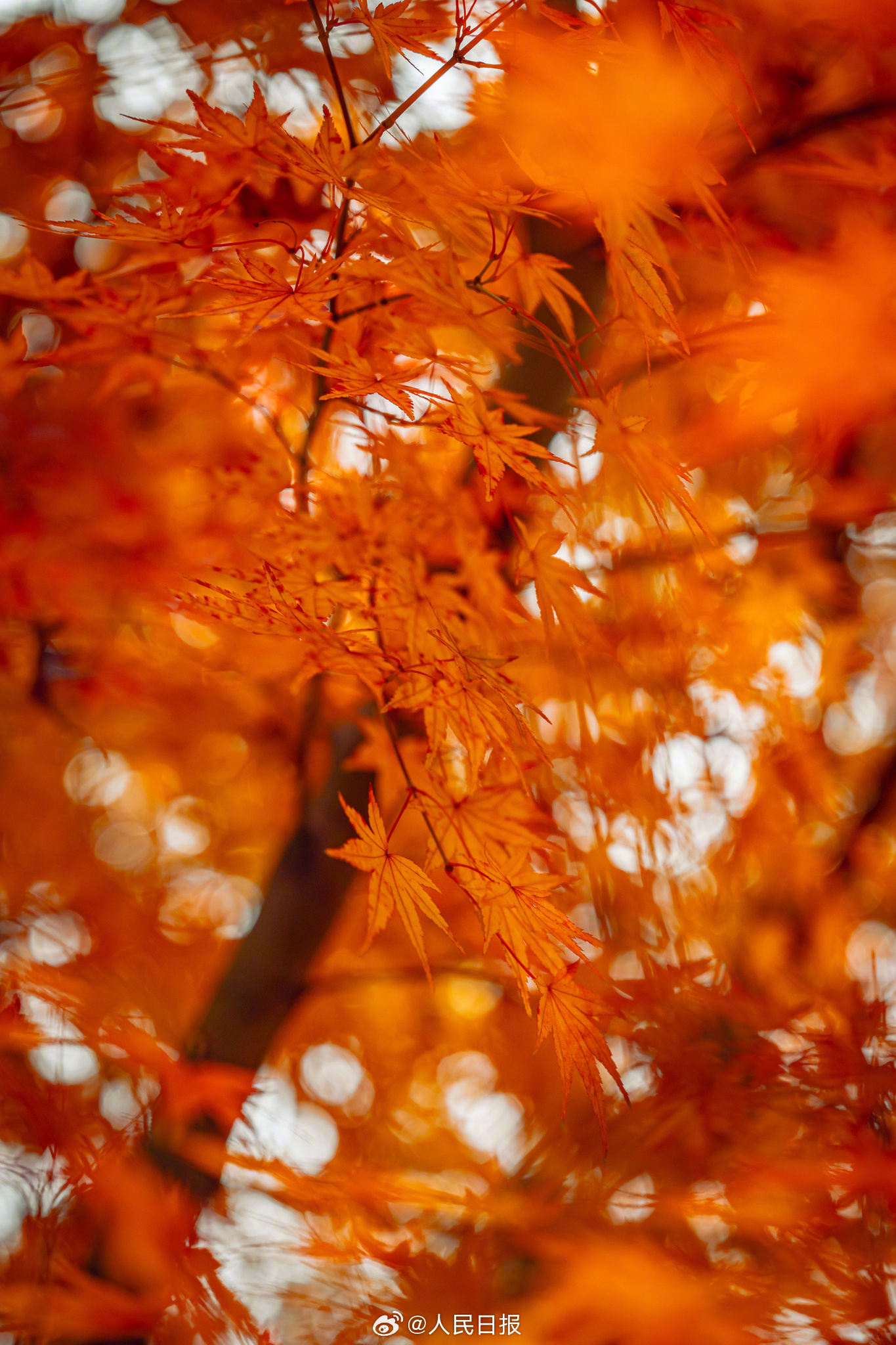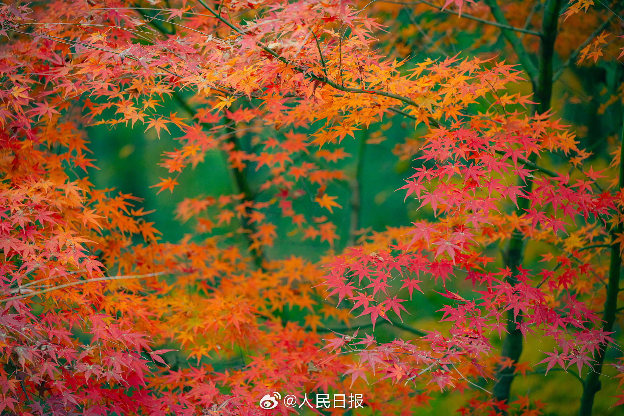 12月9日,江苏南京又到一年一度赏枫时,栖霞山枫叶红似火。(来源:人民日报微博)
