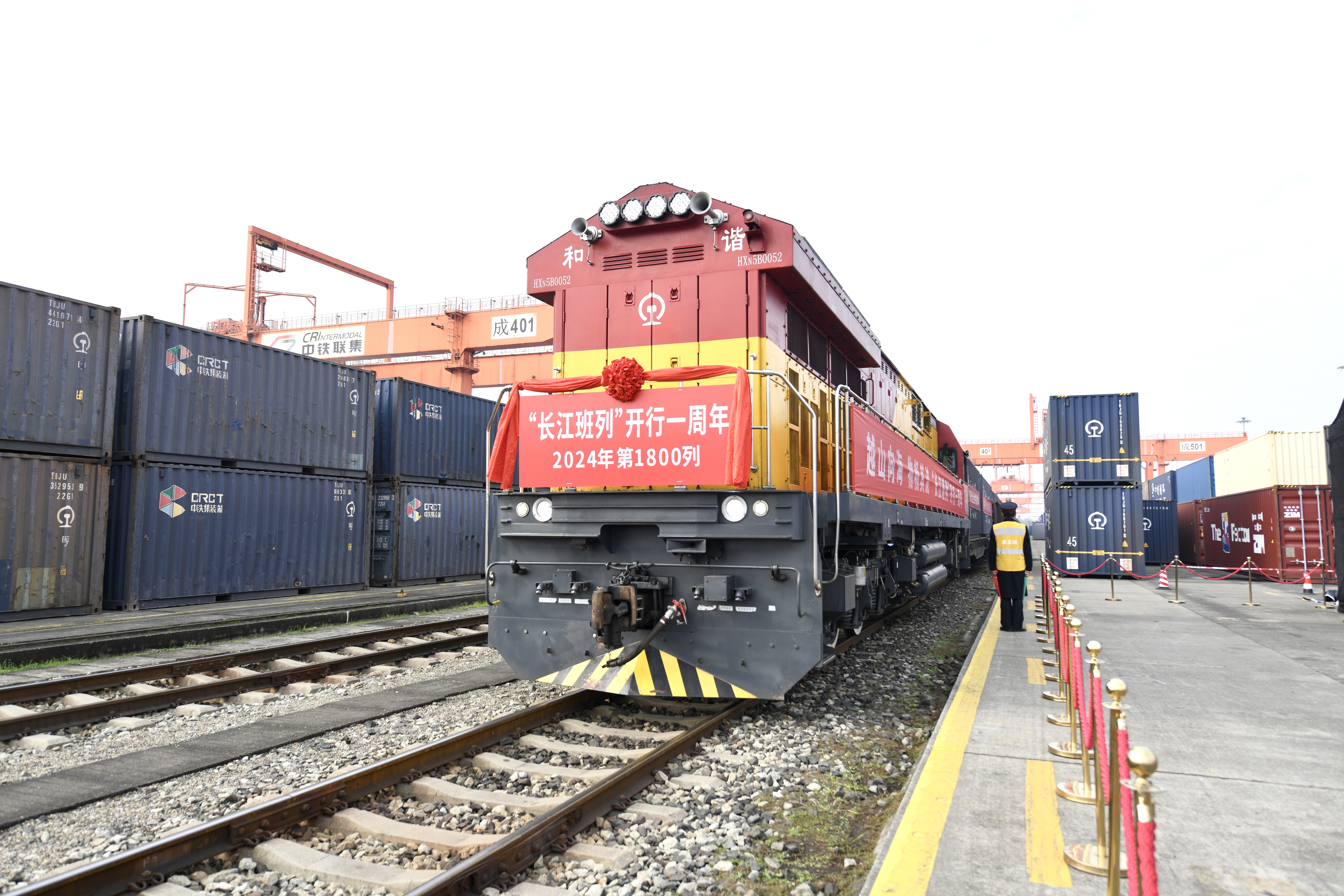 12月11日上午,2024年第1799列、1800列“长江班列”分别从武汉香炉山站、成都青白江城厢站对向开出,提前20天完成全年开行任务,“长江班列”迎来常态化运营一周年的重要里程碑。