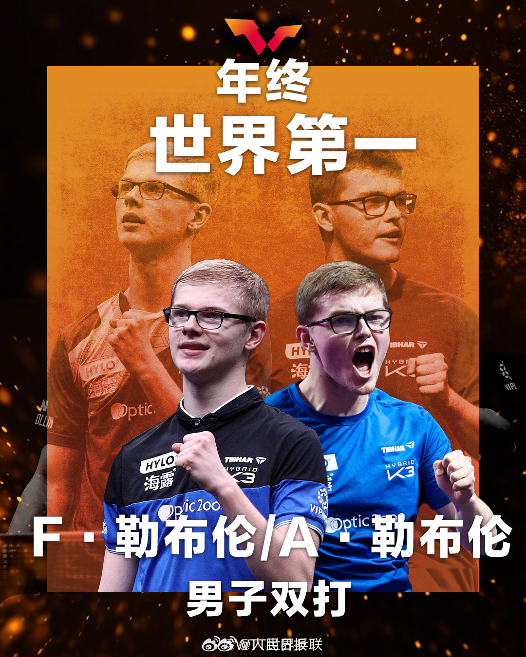 近日,WTT世界乒联公布2024国际乒联年终单打世界第一和双打世界第一。