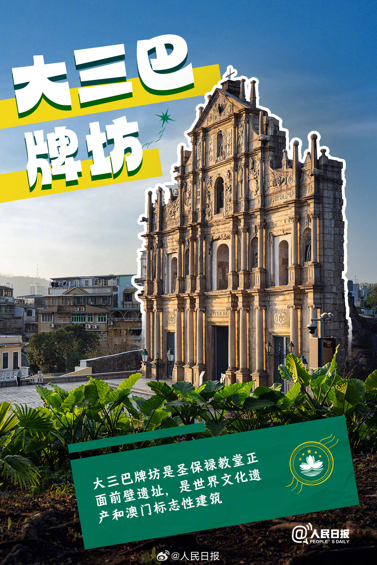 澳门,虽小却大,既古朴又摩登。大三巴牌坊、官也街、恋爱巷、澳门旅游塔……澳门citywalk宝藏攻略,一起玩转澳门!(来源:人民日报微博)