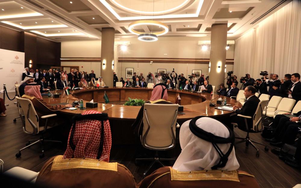 这是12月14日在约旦亚喀巴拍摄的叙利亚问题阿拉伯部长级联络委员会会议现场。叙利亚问题阿拉伯部长级联络委员会会议12月14日在约旦亚喀巴举行,会后发表的声明强调支持包容和平的叙利亚政治过渡进程,为叙利亚人民提供人道主义帮助。新华社发(穆罕默德·阿布·古什摄)