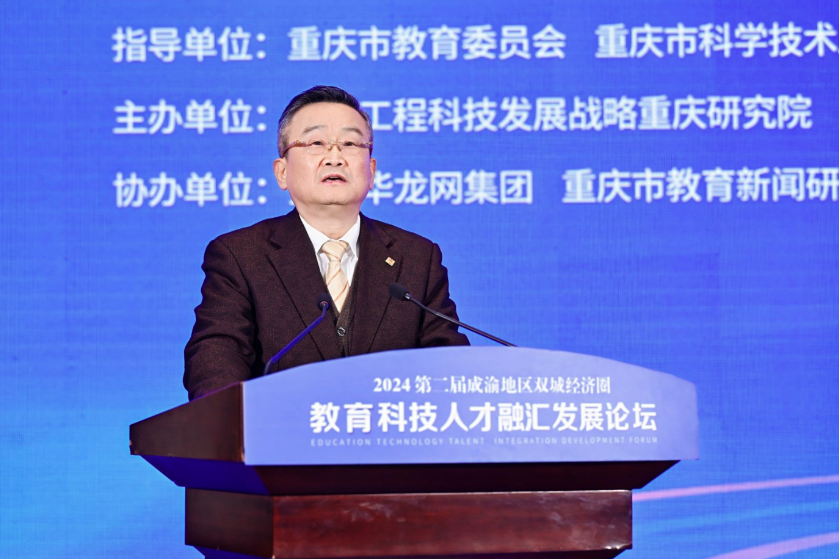 重庆市委教育工委书记、市教委主任刘宴兵在主旨演讲中表示,当前,重庆教育系统正锚定打造西部地区高质量发展增长极动力源的战略目标,坚持“川渝一盘棋”,启动实施《成渝地区双城经济圈教育协同发展行动计划》,配合推进《川渝科研机构协同创新行动方案》《成渝地区双城经济圈人才协同发展战略合作框架协议》,支持双城经济圈建设走深走实。刘宴兵从“推动数字时代双城经济圈建设走深走实,切实发挥教育科技人才一体发展的支撑作用”“推动数字时代双城经济圈建设走深走实,切实发挥高校在教育科技人才一体化发展中的引领作用”“推动数字时代双城经济圈建设走深走实,切实发挥教育科技人才自身数字化改革示范作用”三个方面进行了系统阐释和深入解读。