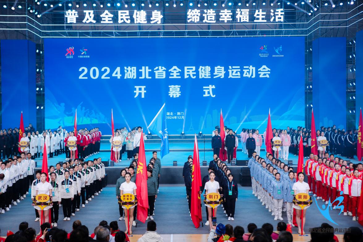 12月16日晚,2024湖北省全民健身运动会在荆门市体育文化中心开幕。