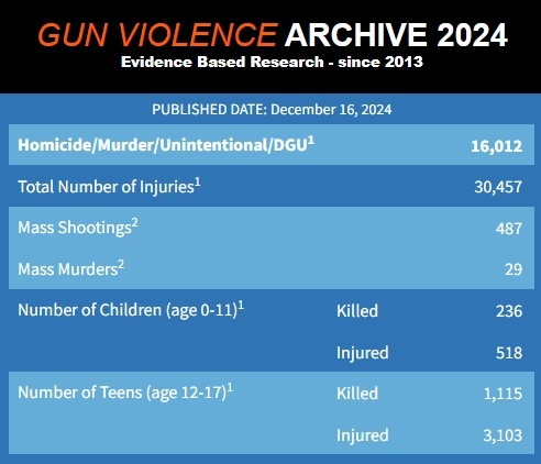 美国“枪支暴力档案”网站发布的数据显示,截至12月16日,美国今年已发生487起造成至少4人伤亡的大规模枪击事件,超过1300名17岁以下未成年人死于枪支暴力。