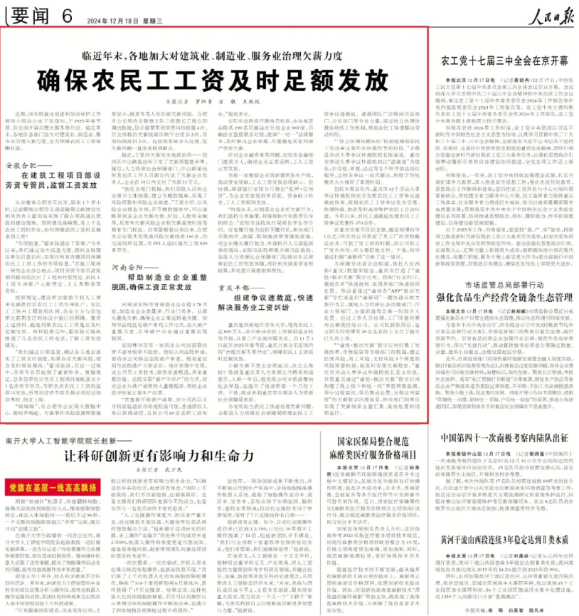 近期,国务院就业促进和劳动保护工作领导小组办公室下发通知,于2025年春节前,在全国开展治理欠薪冬季行动。临近年末,各地区各部门加大对建筑业、制造业、服务业治理欠薪力度,全力保障农民工工资报酬权益。