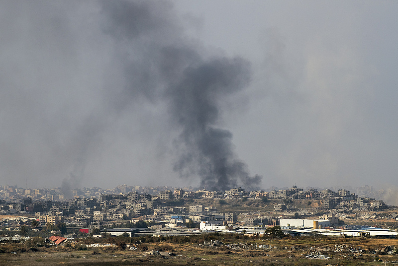 12月17日,从以色列南部地区可以看到,加沙地带升起黑烟。多方当天表示,加沙停火谈判取得良好进展