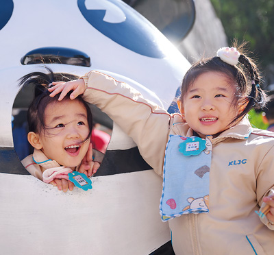 在澳门石排湾郊野公园大熊猫馆外玩耍的澳门小朋友。 |