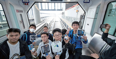澳门市民搭乘澳门轻轨前往广东横琴站。 |