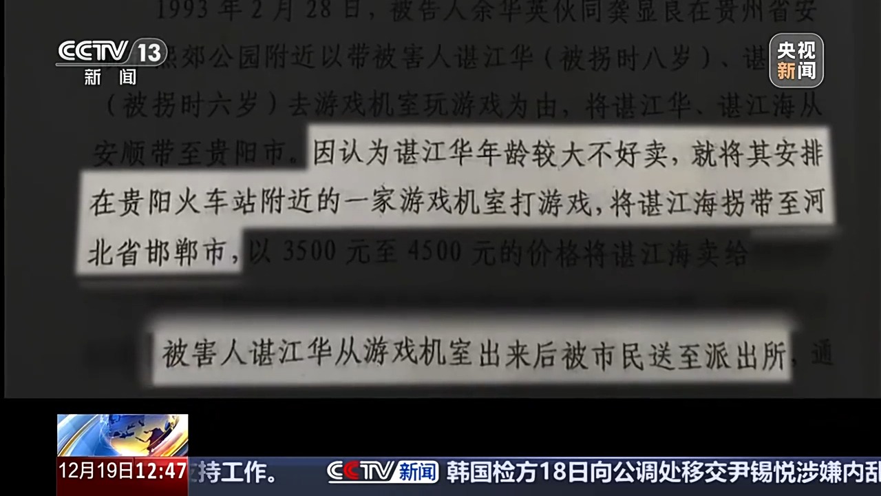 根据起诉书指控内容,余华英认为谌江华年龄较大不好卖,就将其安排在贵阳火车站附近的一家游戏机室打游戏,哥哥后经好心人送回家,弟弟谌江海则被拐带至河北省邯郸市。
