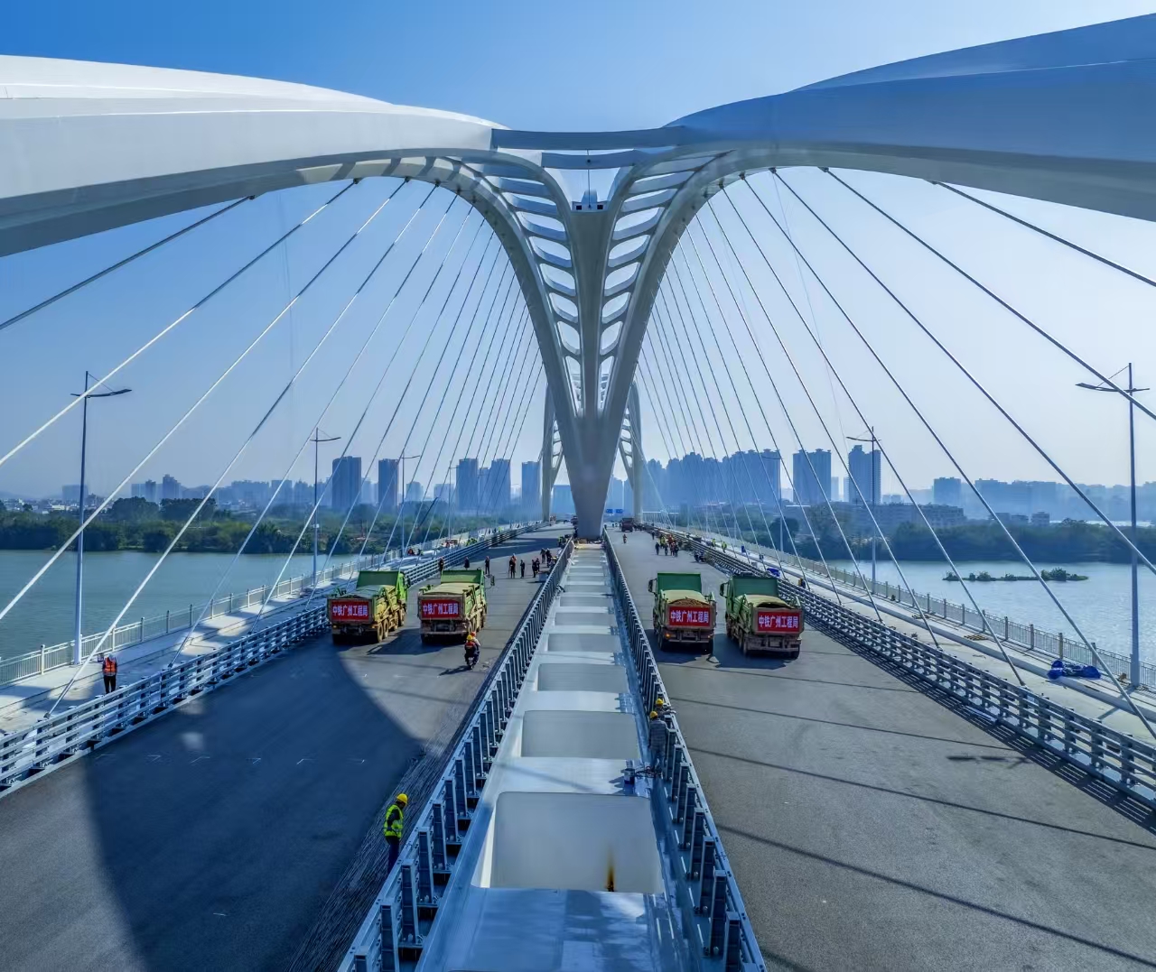 据中铁广州工程局集团项目负责人介绍,经过紧张测试以及对荷载试验数据进行分析,惠州鹅城大桥各项指标均满足设计要求,桥梁与设计及规范要求相吻合,大桥响应正常、状态良好,具备良好的承载能力和稳定性,为年底通车奠定了坚实的基础。