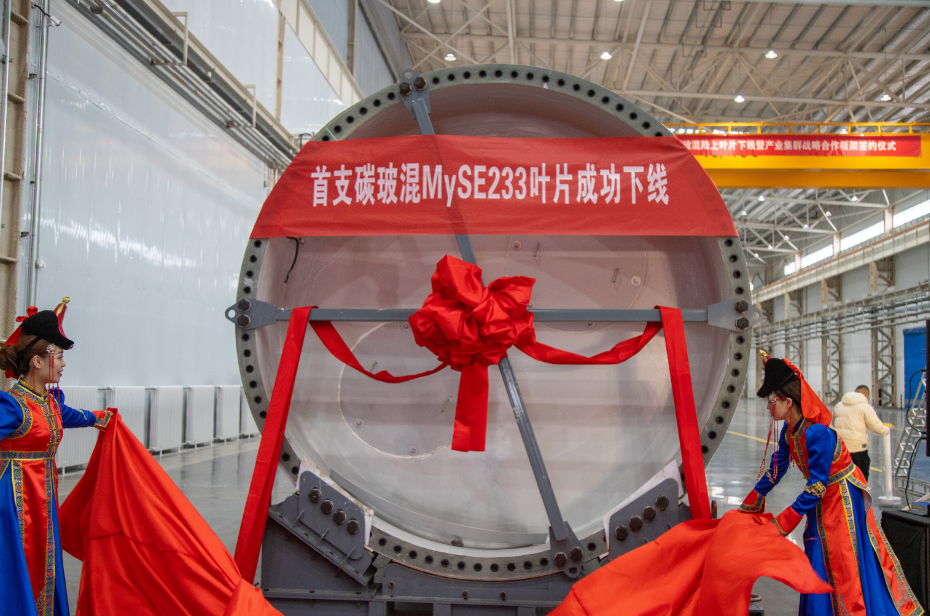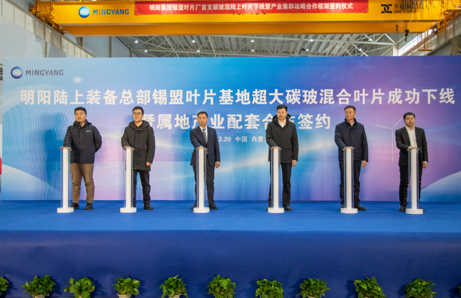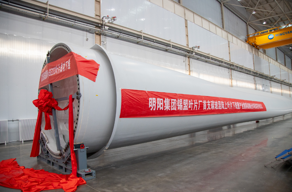 2024年12月20日,明阳陆上装备总部集团内蒙古锡林郭勒盟叶片基地超大碳玻混合叶片成功下线!该叶片基地的建成投产,是明阳陆上装备总部集团落实总部经济产业发展的生动实践,将有效补强锡林郭勒盟区域叶片产能的短板,进一步增强锡林郭勒盟风电产业链的核心竞争力。
