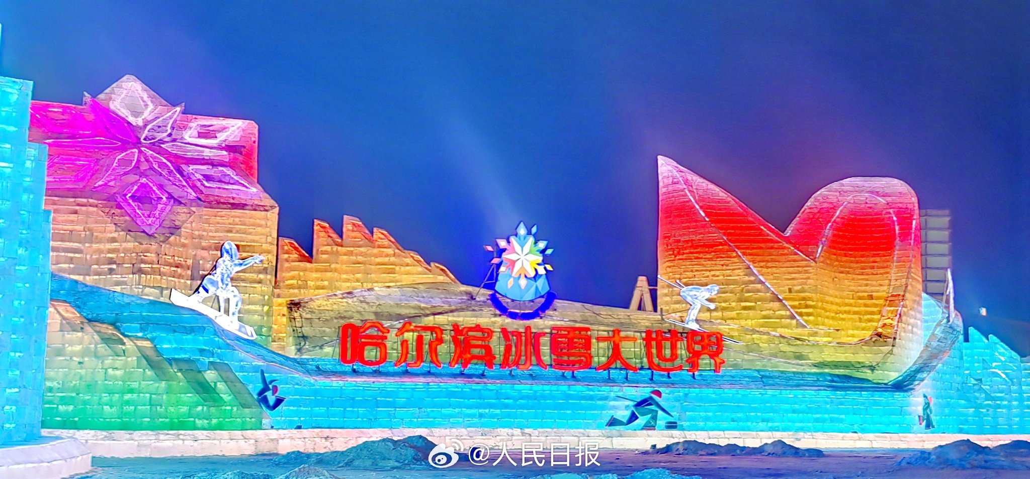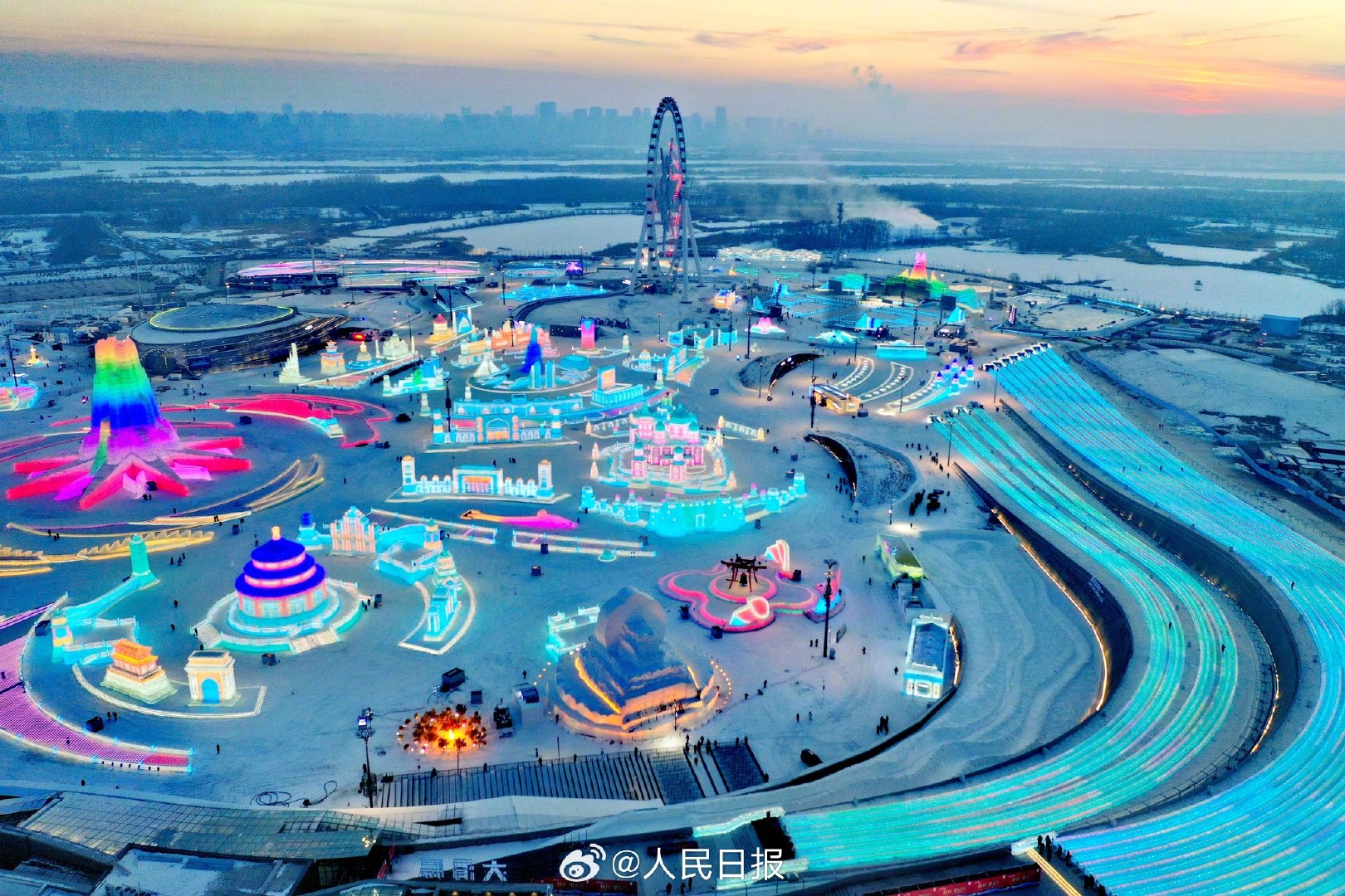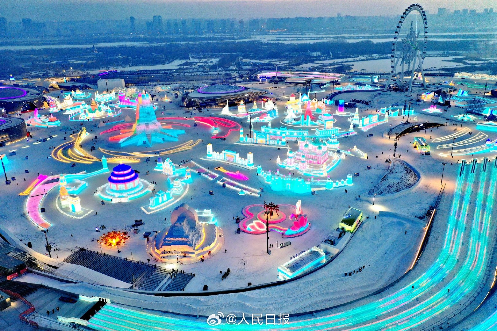 哈尔滨冰雪大世界今日开园,24条冰滑梯体验“速度与激情”