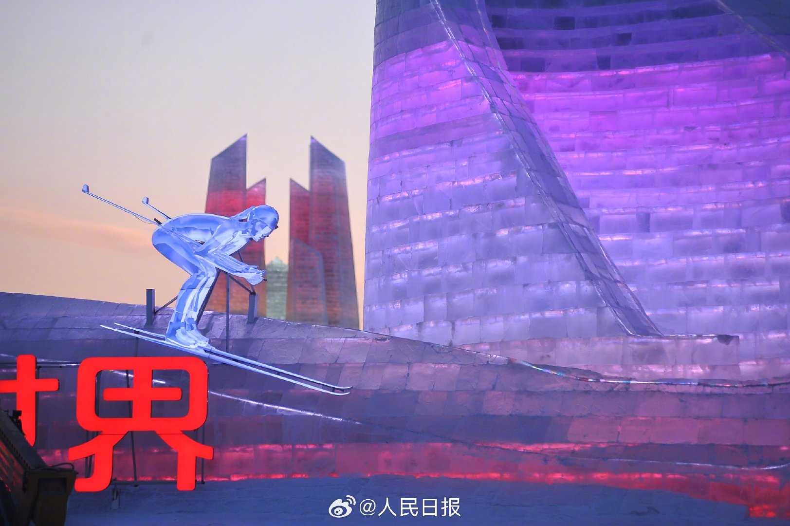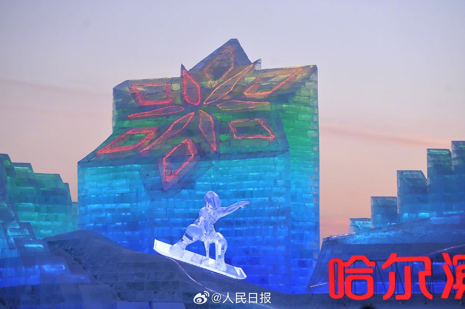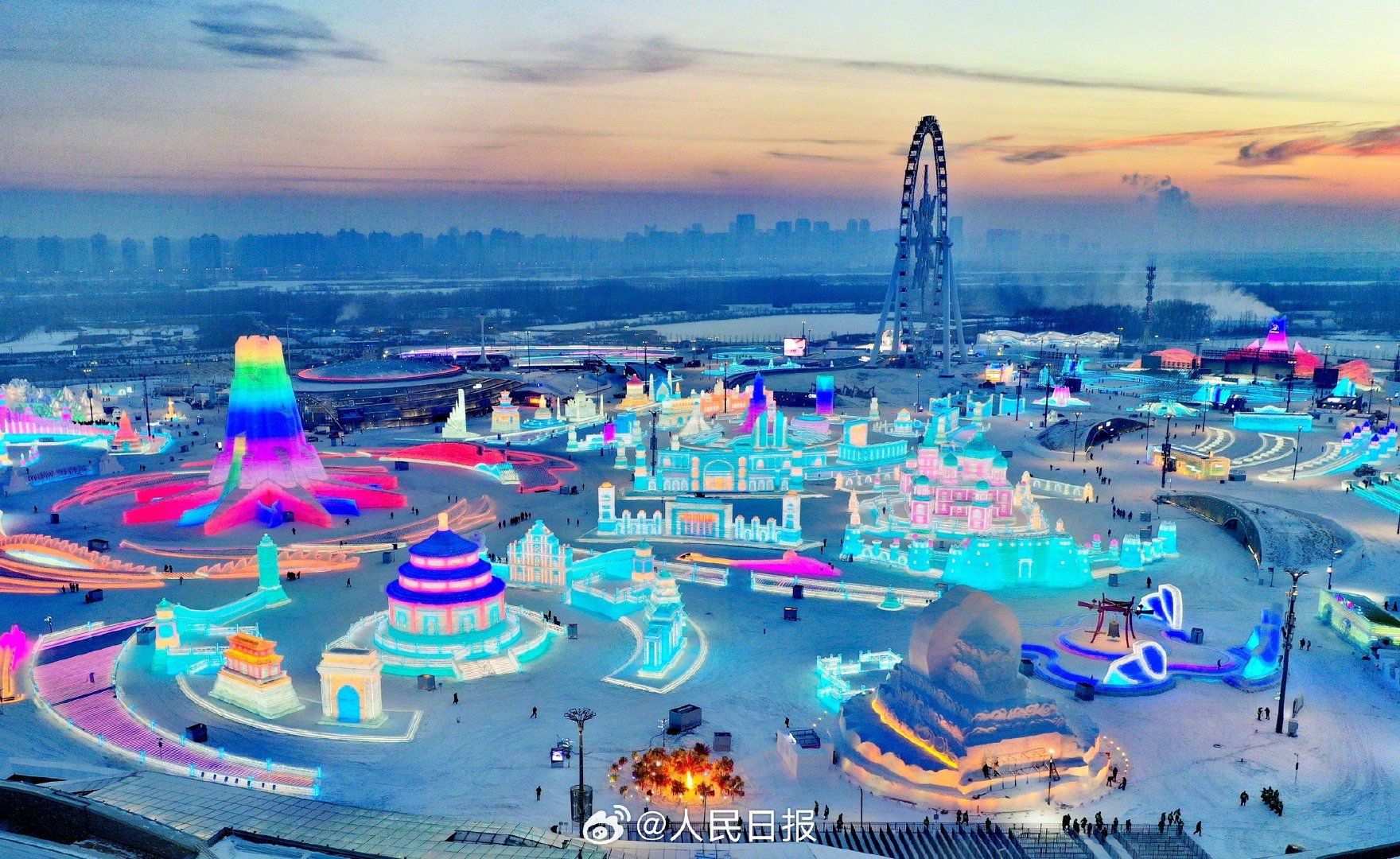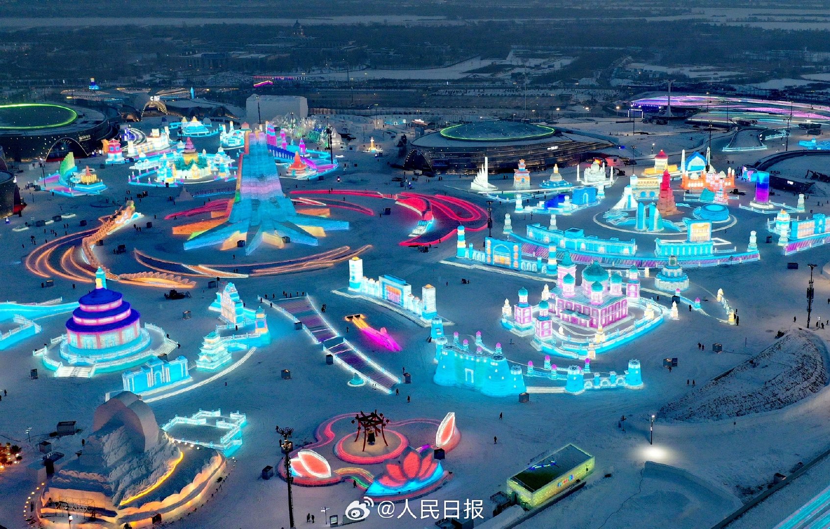 哈尔滨冰雪大世界今日开园,24条冰滑梯体验“速度与激情”