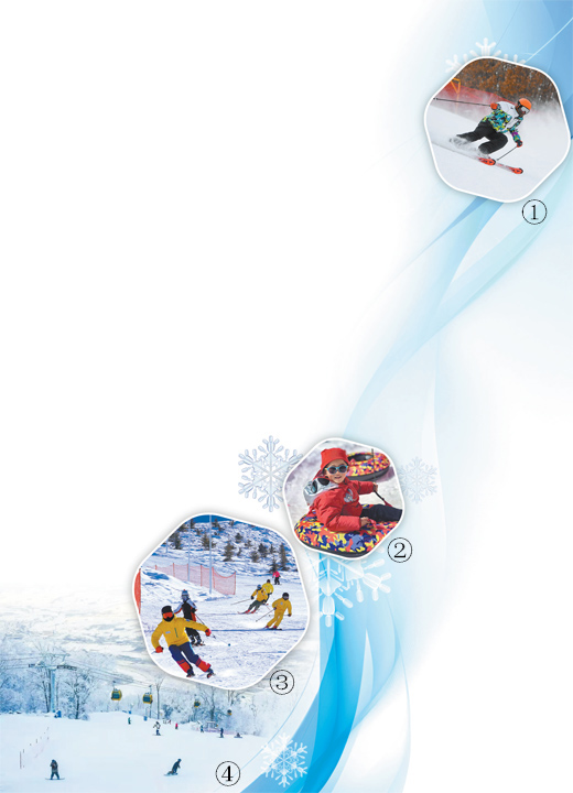 图④:吉林省吉林市北大湖滑雪度假区,滑雪爱好者在雪道上享受冰雪乐趣。