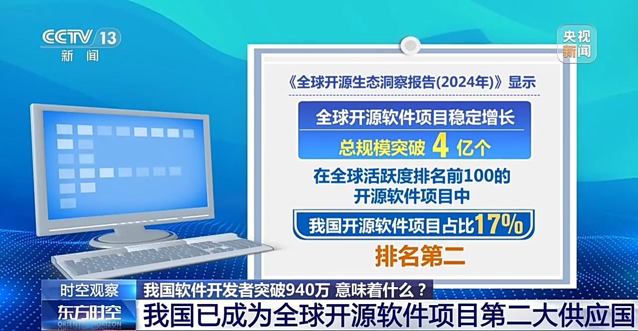 当前,全球新兴经济体国家正纷纷投入开源生态建设。《全球开源生态洞察报告(2024年)》显示,全球开源软件项目稳定增长,总规模突破4亿个。在全球活跃度排名前100的开源软件项目中,我国开源软件项目占比17%,排名第二。目前,全球70%以上的新立项软件项目采用开源模式。据统计,如果没有开源软件,企业研发成本将是现在的3.5倍。