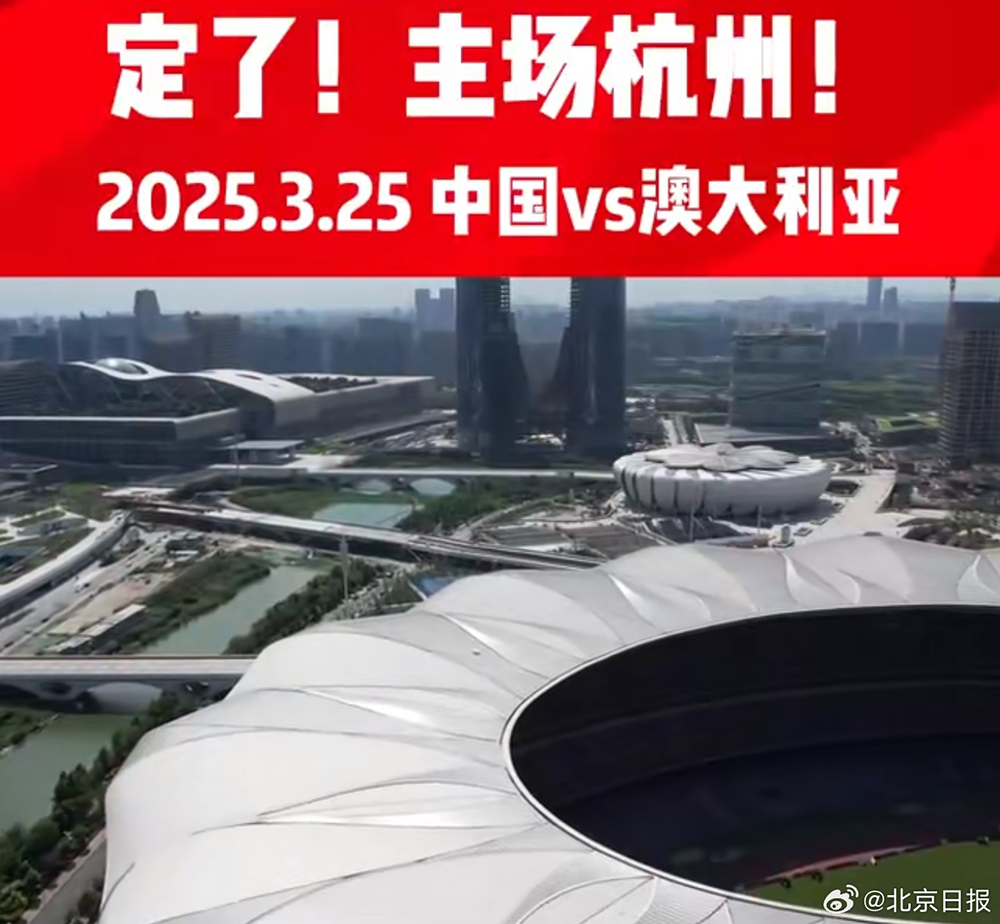 12月23日,中国足协官宣2026世界杯亚洲区预选赛第三阶段中国男足第四个主场为杭州。明年3月25日,中国队将在杭州奥体中心体育场对阵澳大利亚队。