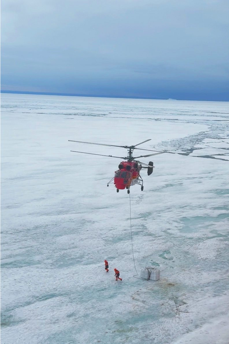 据统计,本次卸货作业,考察队通过“雪龙2”号海冰卸货282吨物资;通过“雪龙”号KA32直升机卸货876.8吨,累计飞行67架次、241吊次,飞行作业时长近170小时。