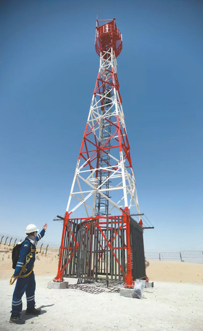 近日,阿联酋首都阿布扎比西南约200公里的荒漠中,立起一座座20米高的钢结构竖塔,塔顶平台上装有约60厘米见方、形如幻灯机的白盒子,正面的两个镜头随盒体缓缓转动,如同人眼般环顾四周。“可别小看这套设备,它是油田的‘透视眼’,能第一时间发现肉眼难以察觉的气体泄漏并报告控制中心。”振华石油控股有限公司(以下简称“振华石油”)阿联酋阿布扎比公司总经理田孝京向记者介绍,这是中国的长距离红外线监测技术首次在国际高端油田现场投入应用。