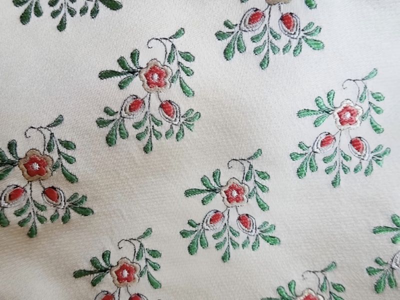 重新配色后的小枝折花纹蜀锦面料。受访者供图
