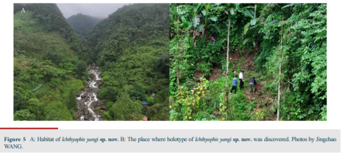 两栖类是最早登陆的脊椎动物类群,分类上属于脊索动物门脊椎动物亚门两栖纲。现生两栖动物仅有蛙和蟾蜍所属的有尾目、娃娃鱼蝾螈等所属的无尾目和无足目三个类群,其中无足目物种最少,此前我国仅有版纳鱼螈一个物种。