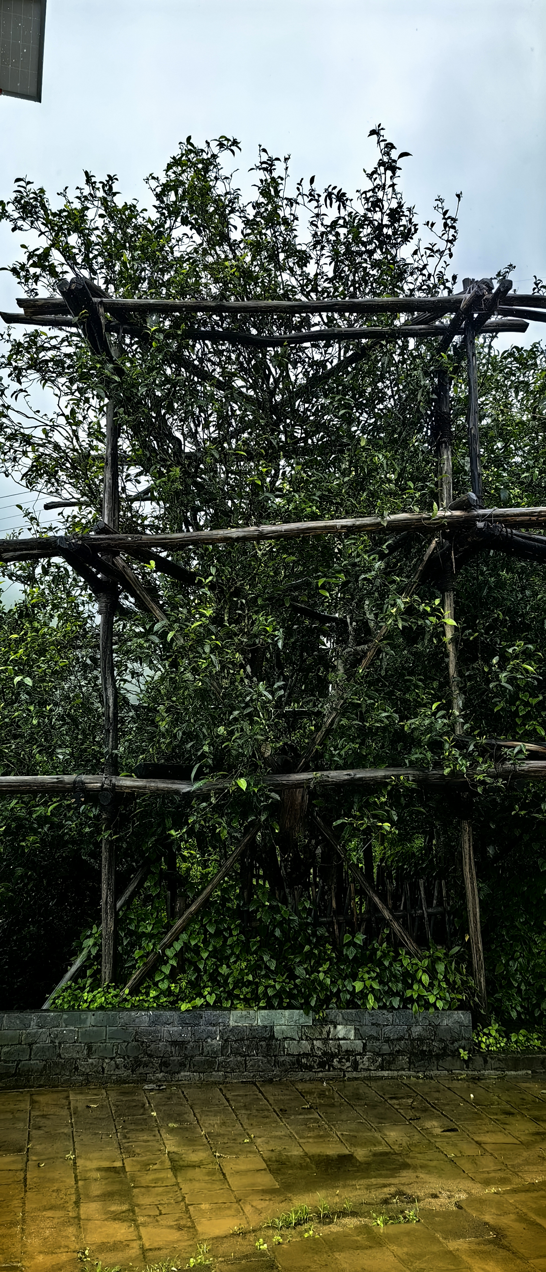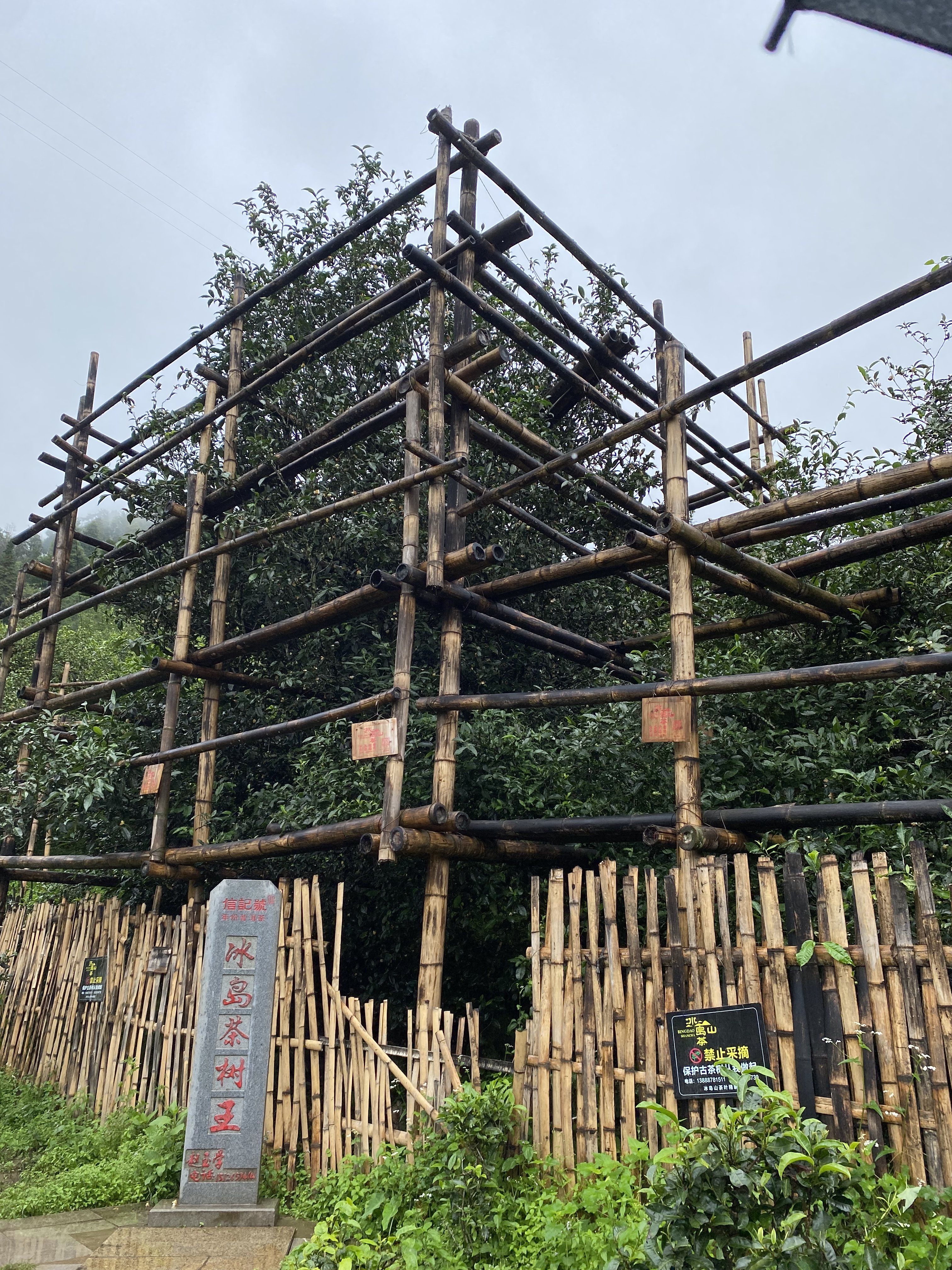 今年6月,我带着疑惑再次走进冰岛村,仍然是去冰岛老寨。先去看了冰岛村搬迁后特意保留的一户茶农老宅子,据说是为了纪念,也展现一下茶园旧貌。然后去停车场广场,周边有一众被认养的古茶树。原先古茶树上都挂有木牌,标明茶树拥有者的姓氏、茶树名称,比如“拉祜夫人”“拉祜王子”之类,还附有手机号码。这次全都清理掉了,看起来干净利索了许多。