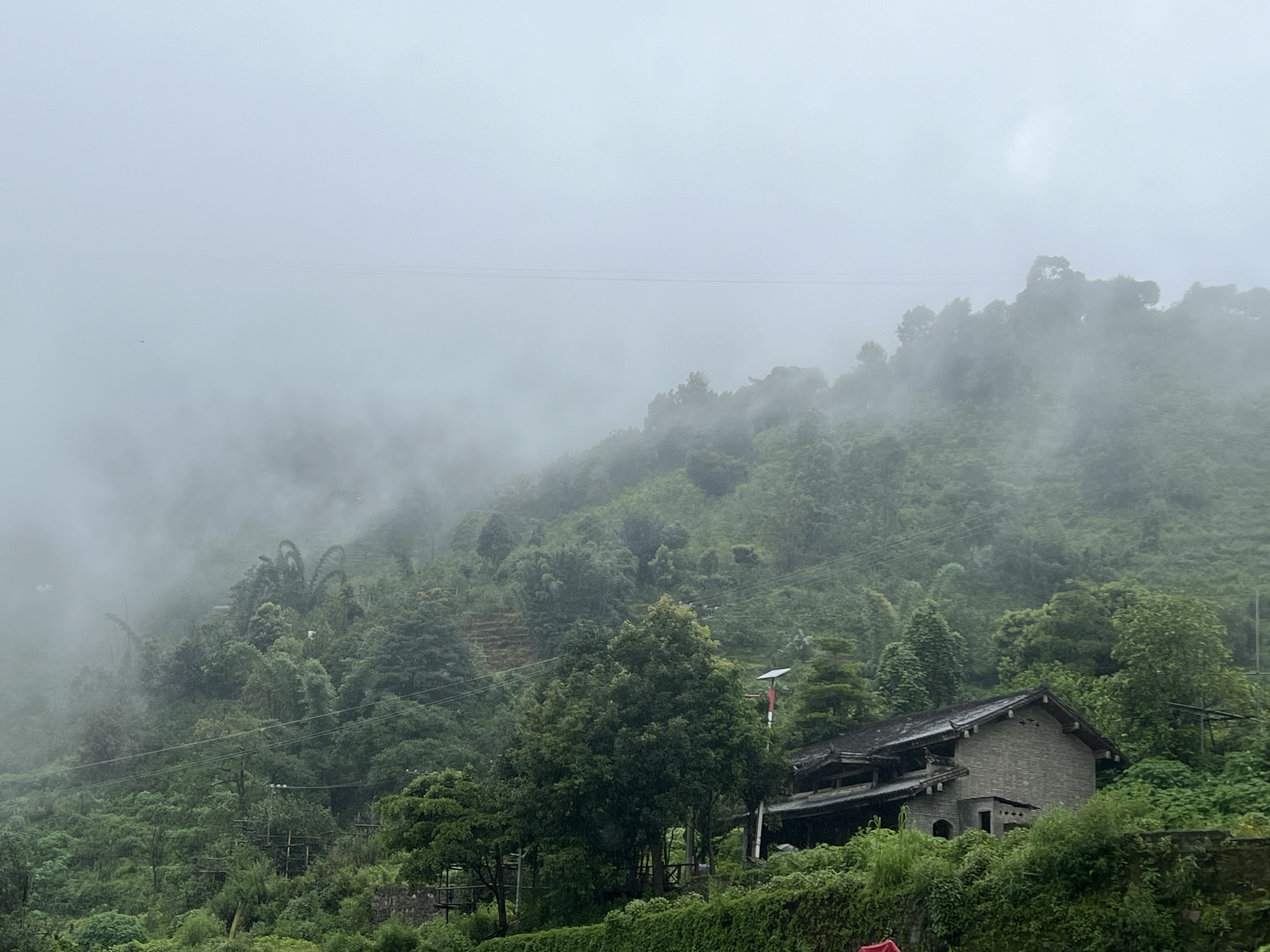 云雾缭绕的冰岛老寨茶园。图中房屋为唯一保留的茶农老宅。斯雄 摄