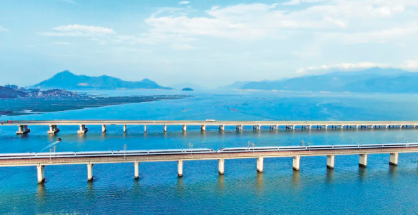 CR300BF型列车驶过温福铁路宁德跨海大桥。胡鹏 摄