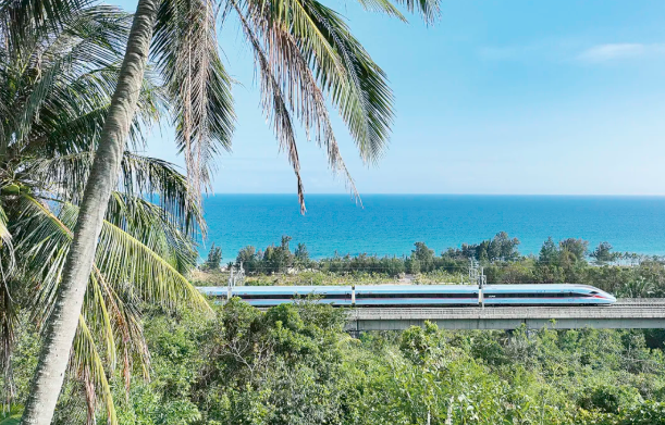 CR300AF型列车行驶在海南东环高铁线上。蔡晶 摄