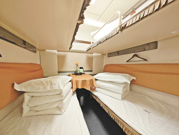 CR400AF—AE 型列车对卧铺充电装置、隔音降噪、温度调节等功能作出优化升级。彭博 摄