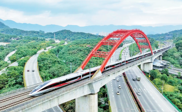 中国火车的速度,从落后到跟跑,再到新时代的领跑,一路飞奔。今天,高铁已成为“我国装备制造的一张亮丽的名片”,“高铁技术树起国际标杆”。
