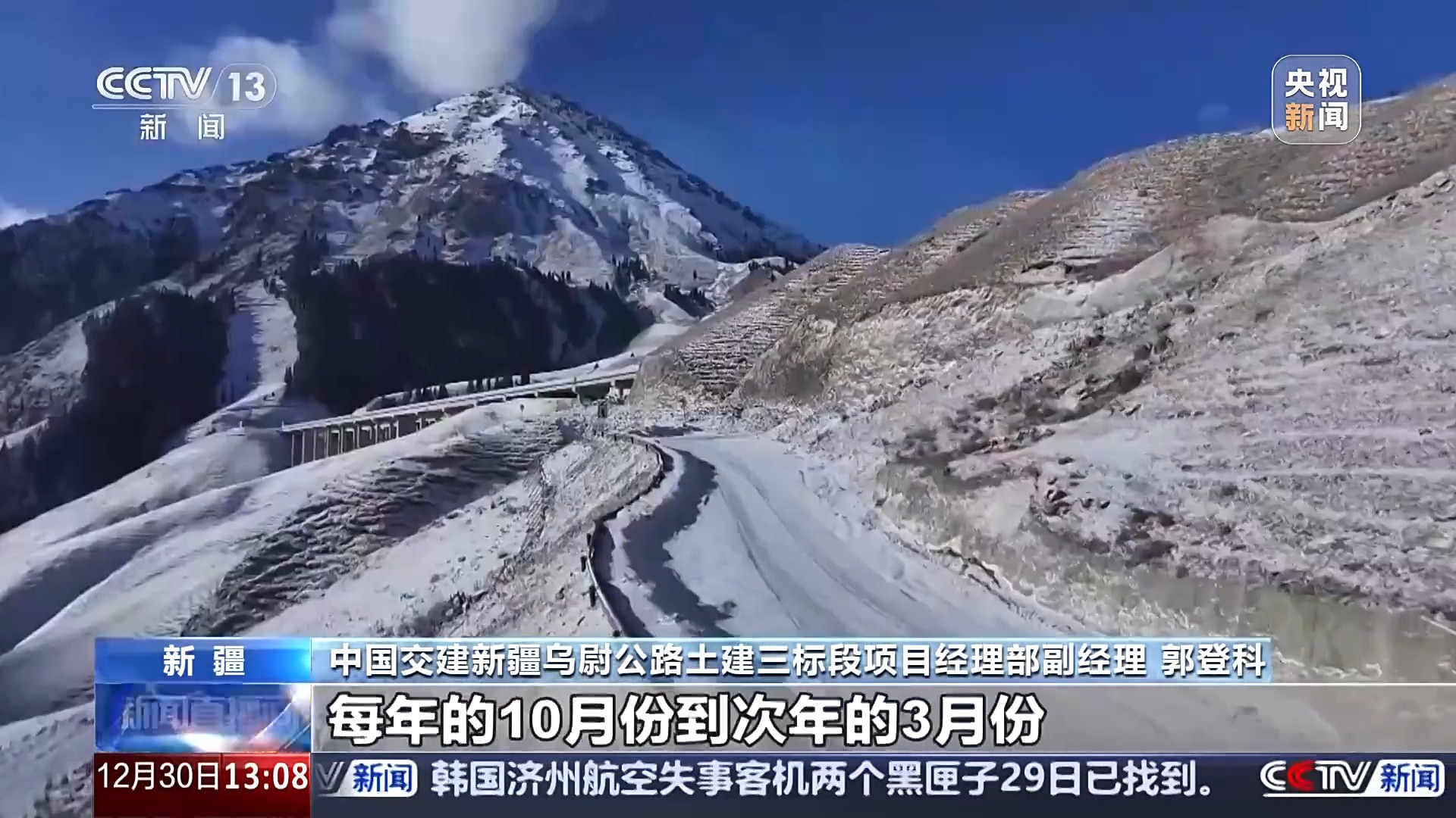 中国交建新疆乌尉公路土建三标段项目经理部副经理 郭登科:我们项目最大的困难就是临时便道的修筑。我们一共修筑了9条便道,用于物料的运输。每年的10月份到次年的3月份就是频繁降雪的,因此每年的有效施工期就5个来月,有效施工时间特别短。