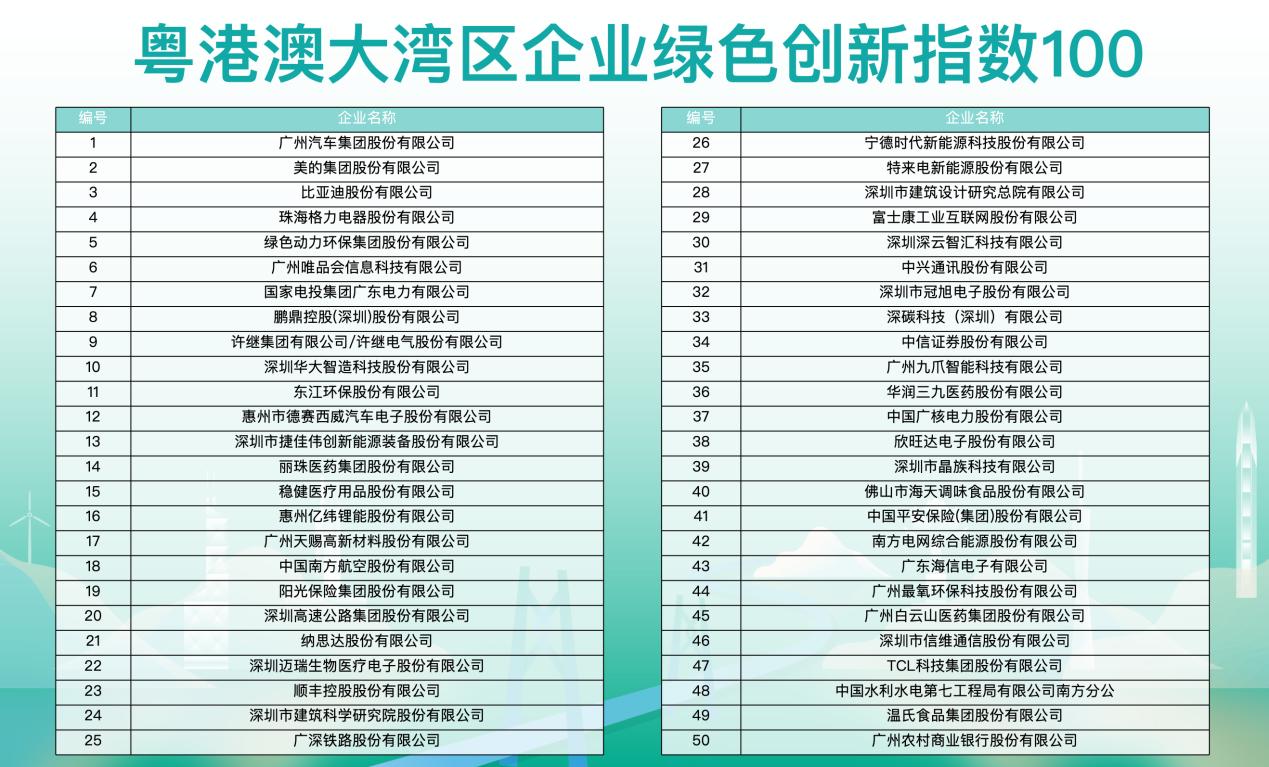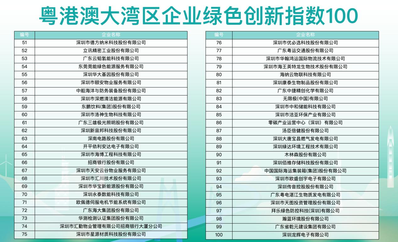 附:粤港澳大湾区企业绿色创新指数100