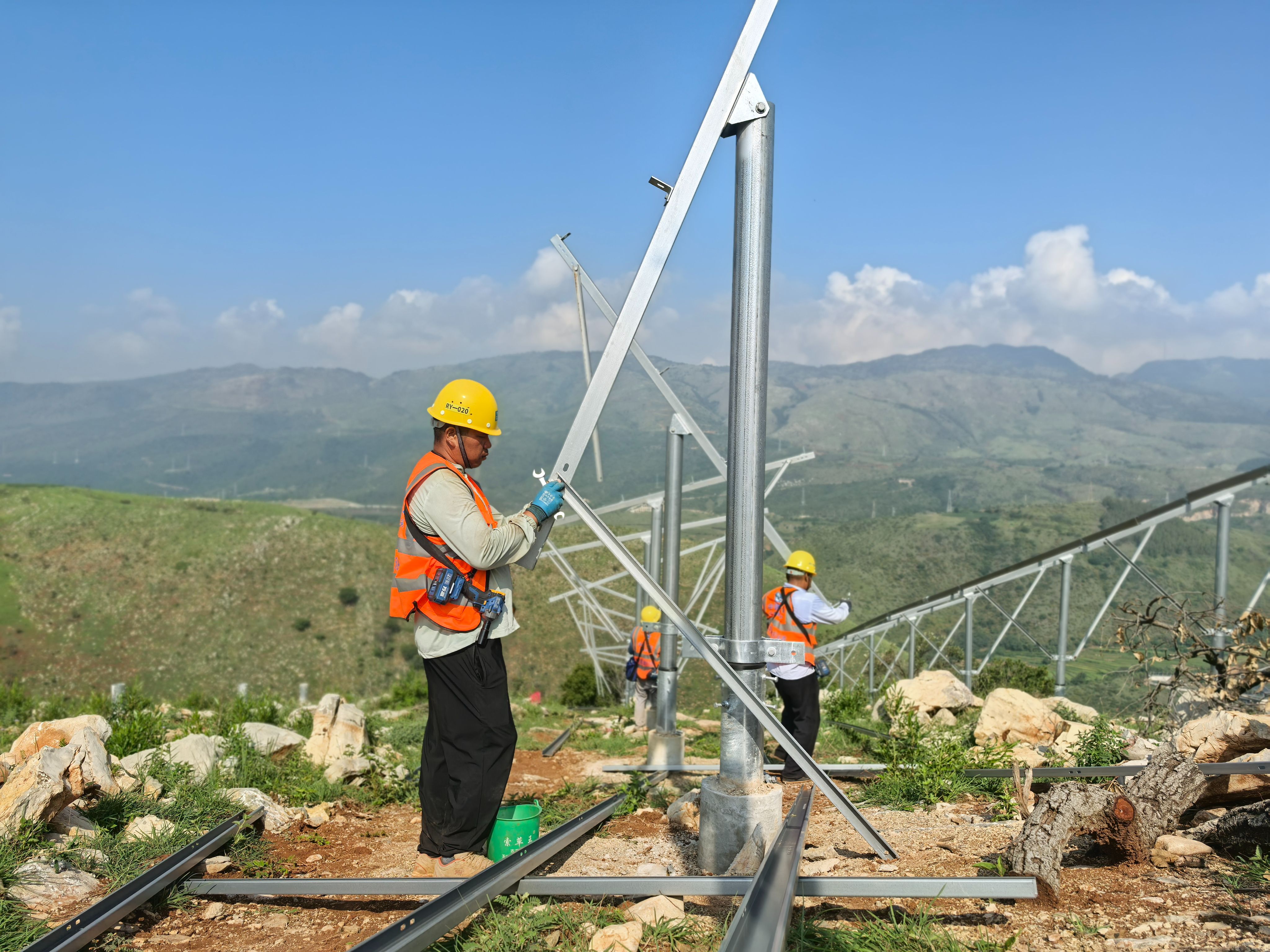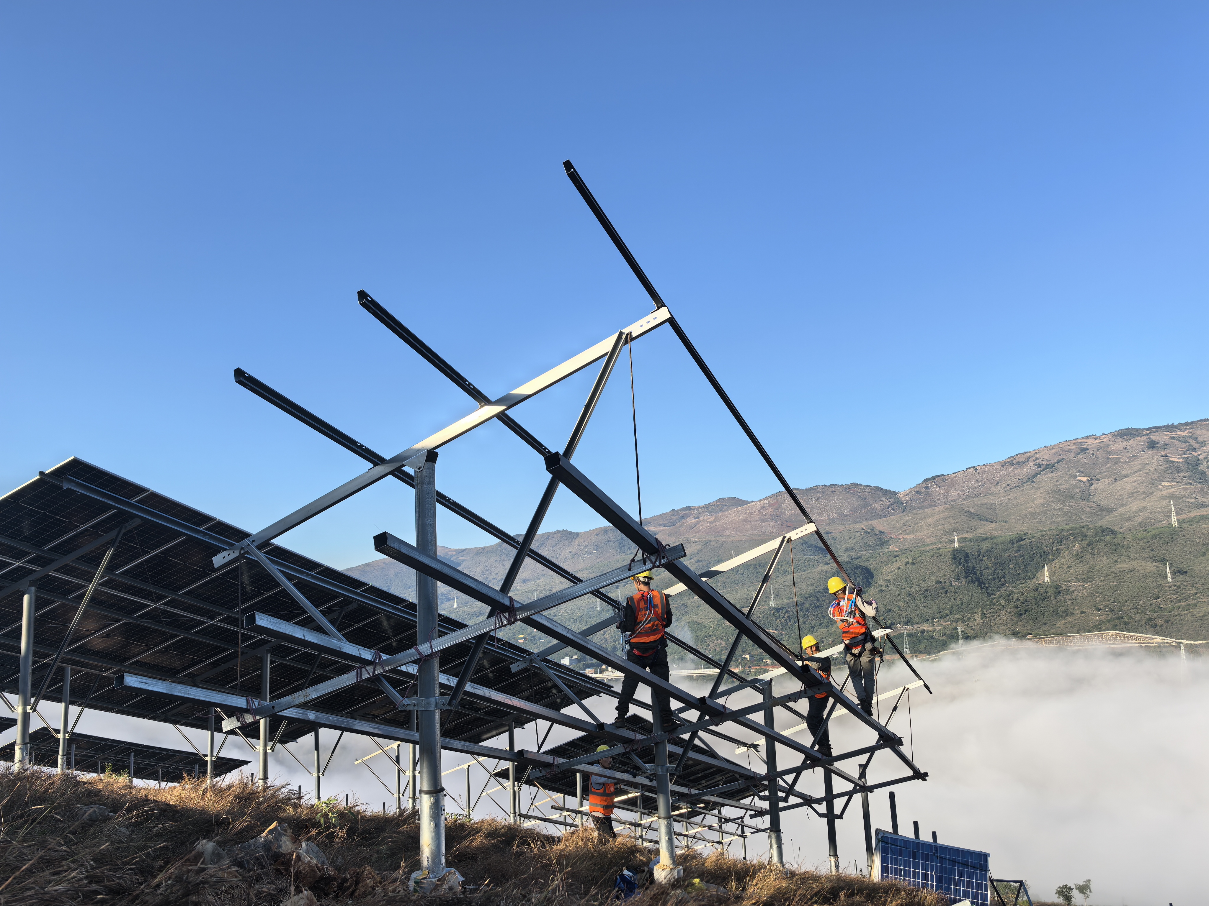 寒风呼啸,冬意正浓,在云南省红河州开远市的那依、小石岩光伏电站项目现场,200余名建设者仍然坚守项目生产一线,加紧安装光伏发电板和相应的组件,为并网而争分夺秒。