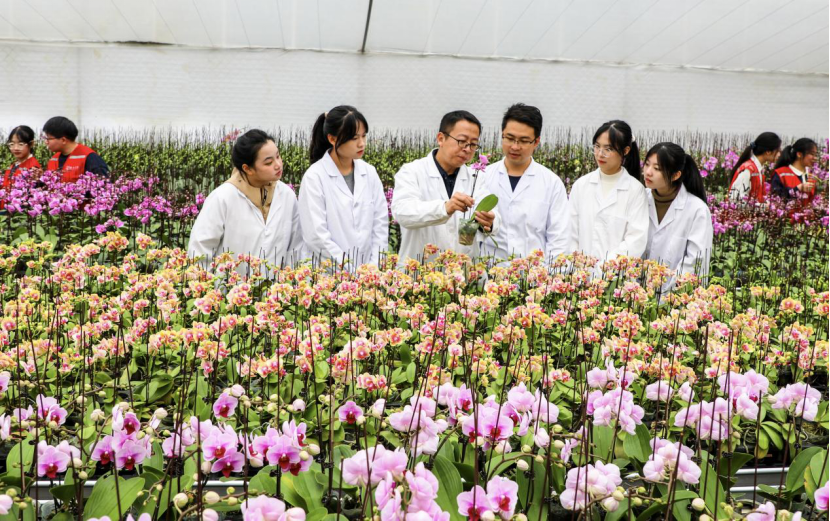 生物与农业学院郑秋桦团队用自主知识产权技术,构建了韶关、清远、赣州三地市五县区蝴蝶兰产业带,预计可吸纳1000余名劳动力就业,促进当地农民增收近1000万元。