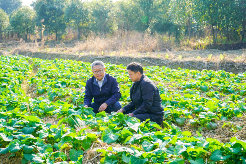 韶关学院科技特派员在田间与农户交流油菜种植方法