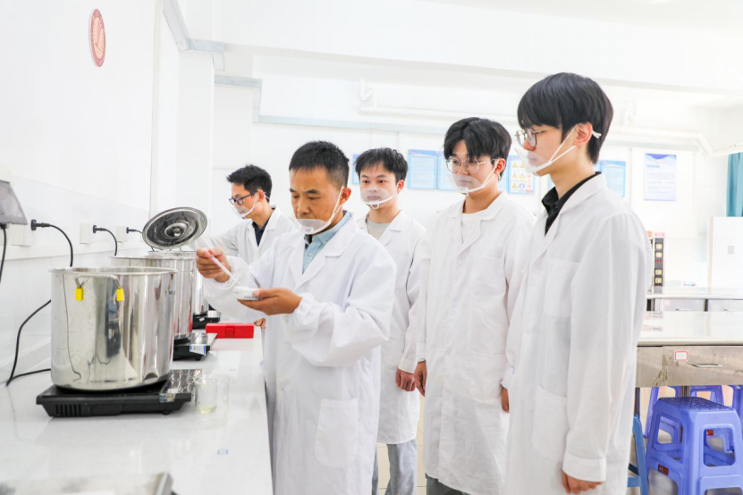 藤茶叶熬煮后,韶关学院师生在实验室测定可溶性固形物含量