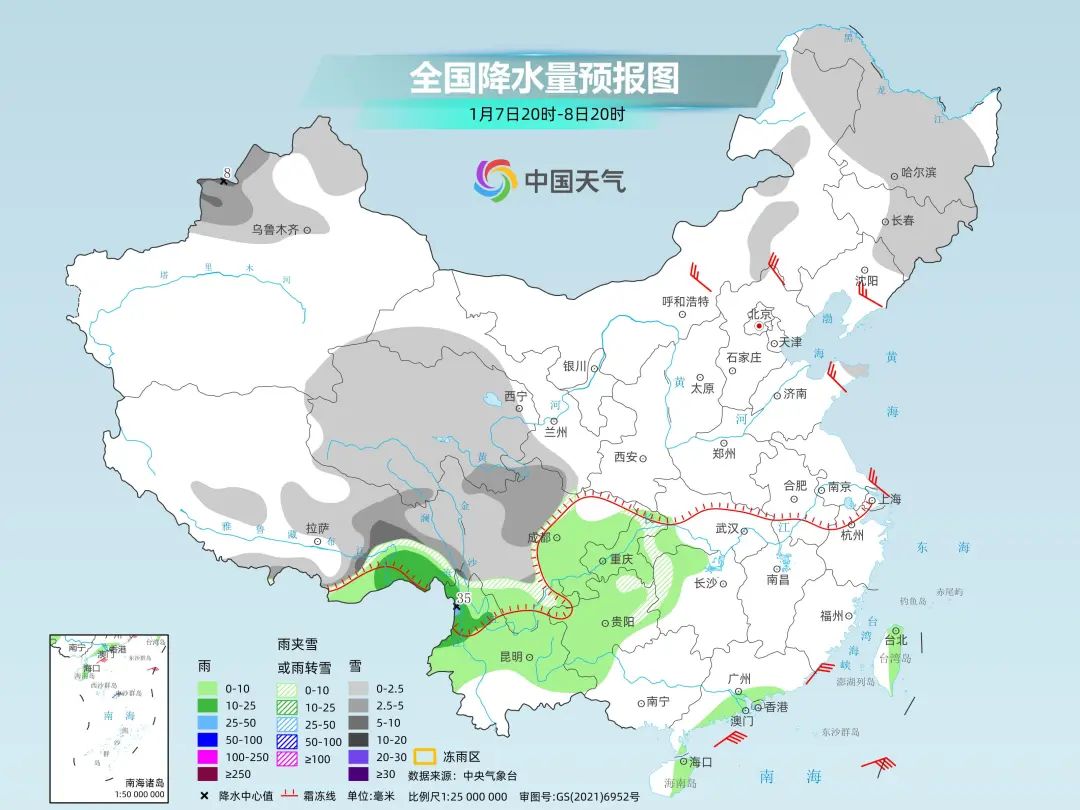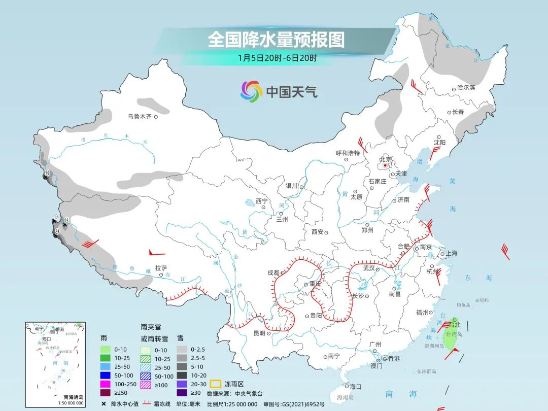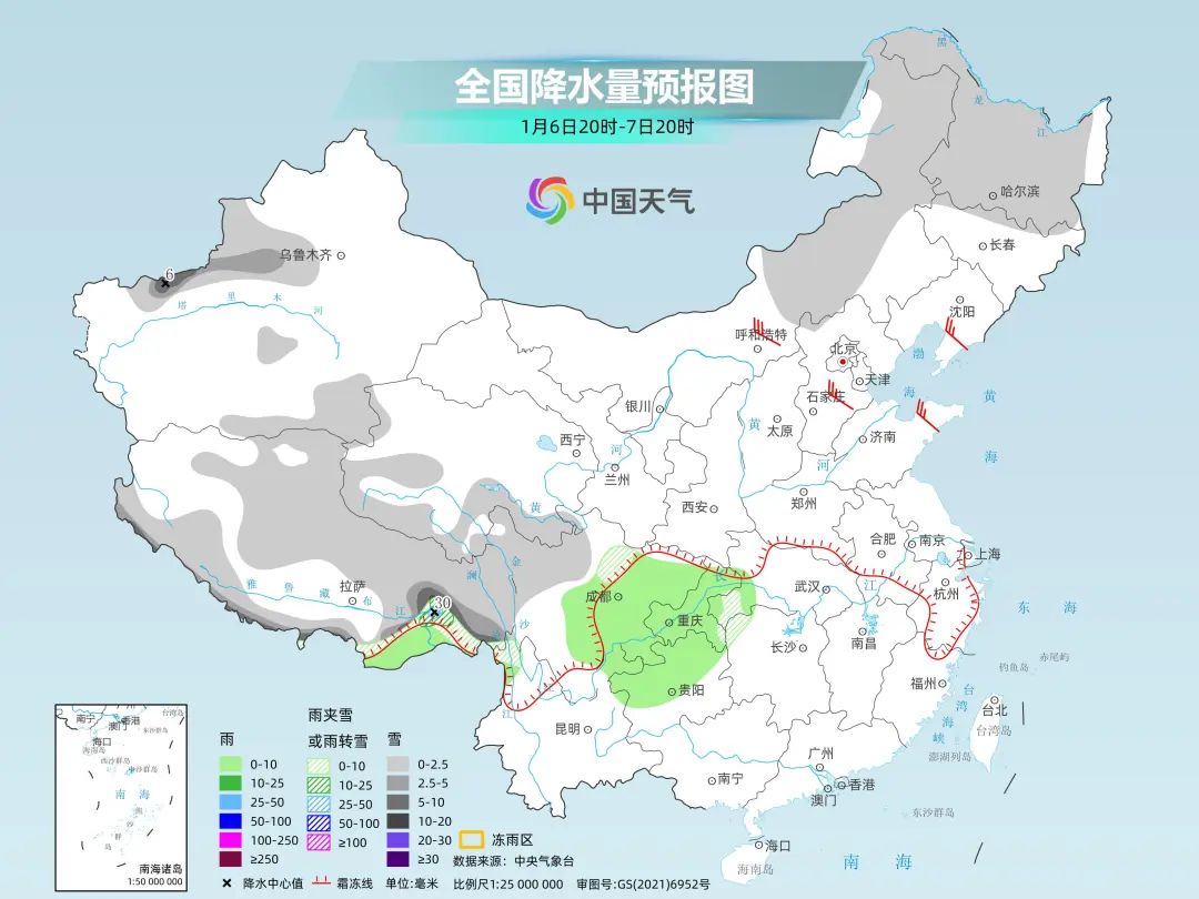 中央气象台预计,6日夜间至9日,四川南部、云南北部、贵州中北部、重庆东部、湖北西部和湖南西部有小雨转雨夹雪或雪,其中四川南部、云南西北部和东北部、贵州北部、湖北西南部、湖南西北部等地的部分地区有中到大雪,局地暴雪,贵州中北部、湖北西南部、湖南西部等地局地有冻雨。雨雪相态较为复杂,最强雨雪时段将出现在8日。