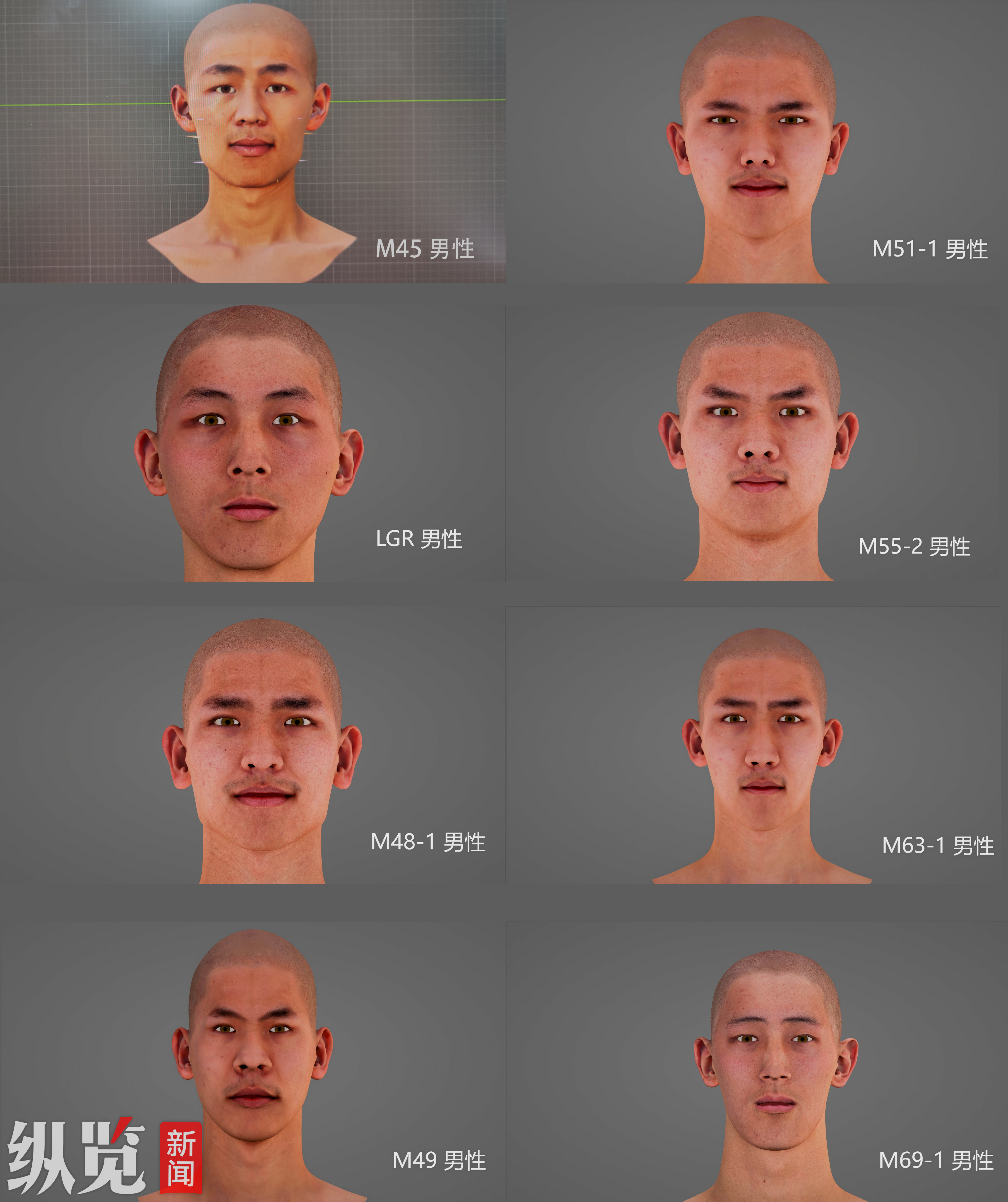8位沧州肃宁雪村战斗烈士容貌复原图。供图/复旦大学分子考古实验室