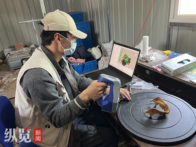 研究人员在为肃宁烈士遗骸进行鉴定复原工作。供图/复旦大学分子考古实验室