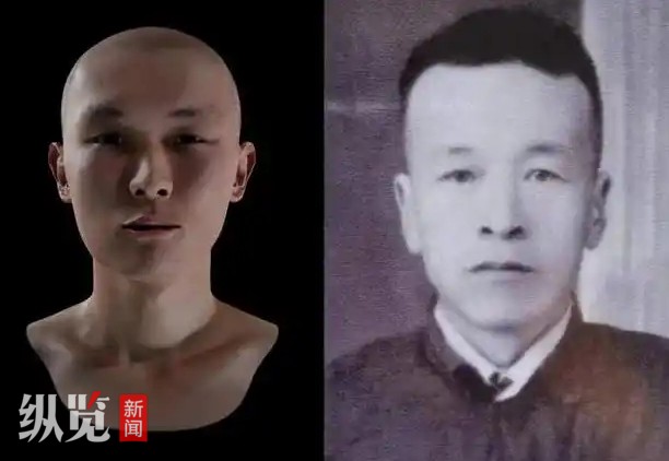 崔海治烈士容貌复原图(左)与其兄照片(右)对比。供图/复旦大学分子考古实验室